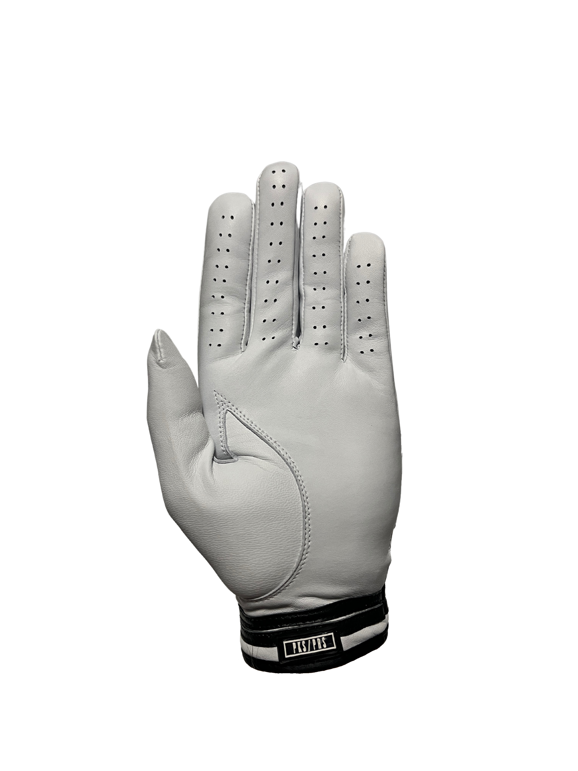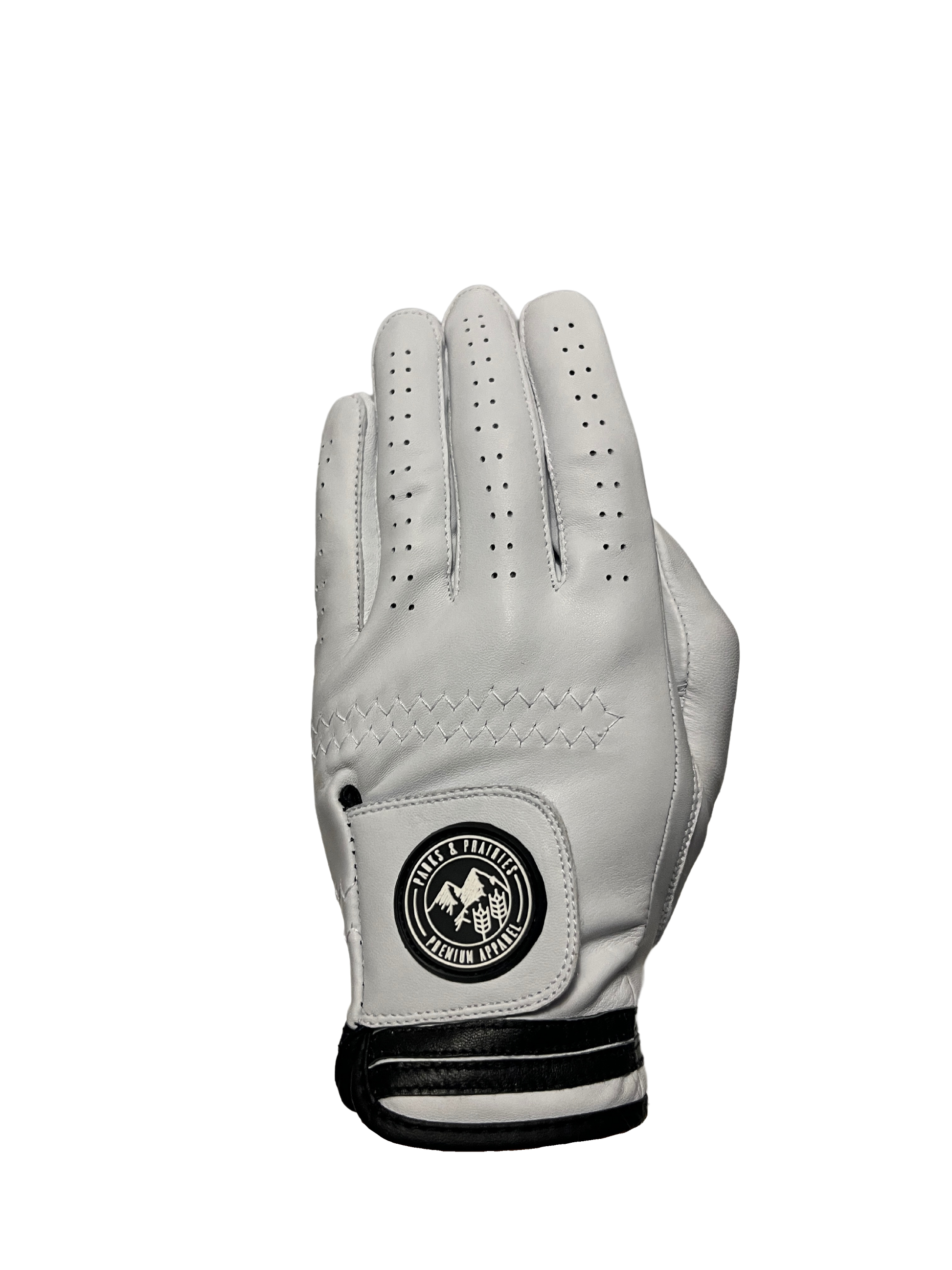 The Men's Golf Glove is made of buttery soft, AAA Cabretta Leather. Featuring an classic white colorway with black accents, our gloves deliver top quality materials with comfort and style.