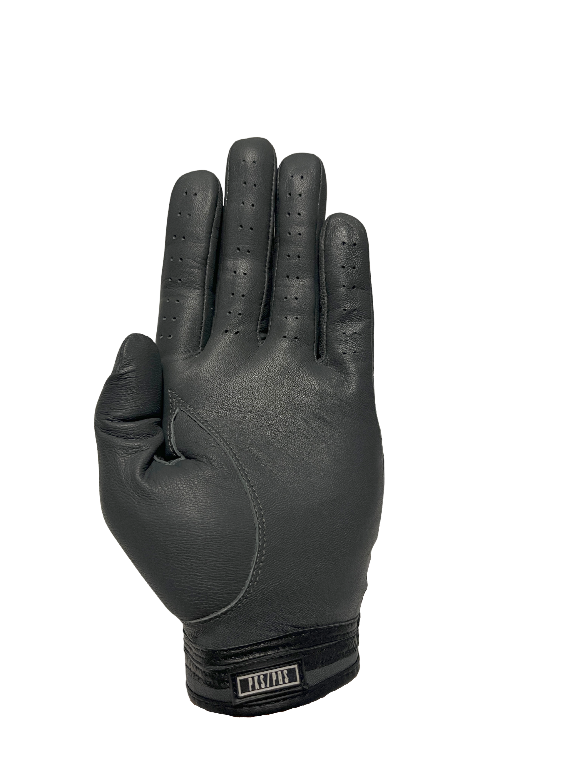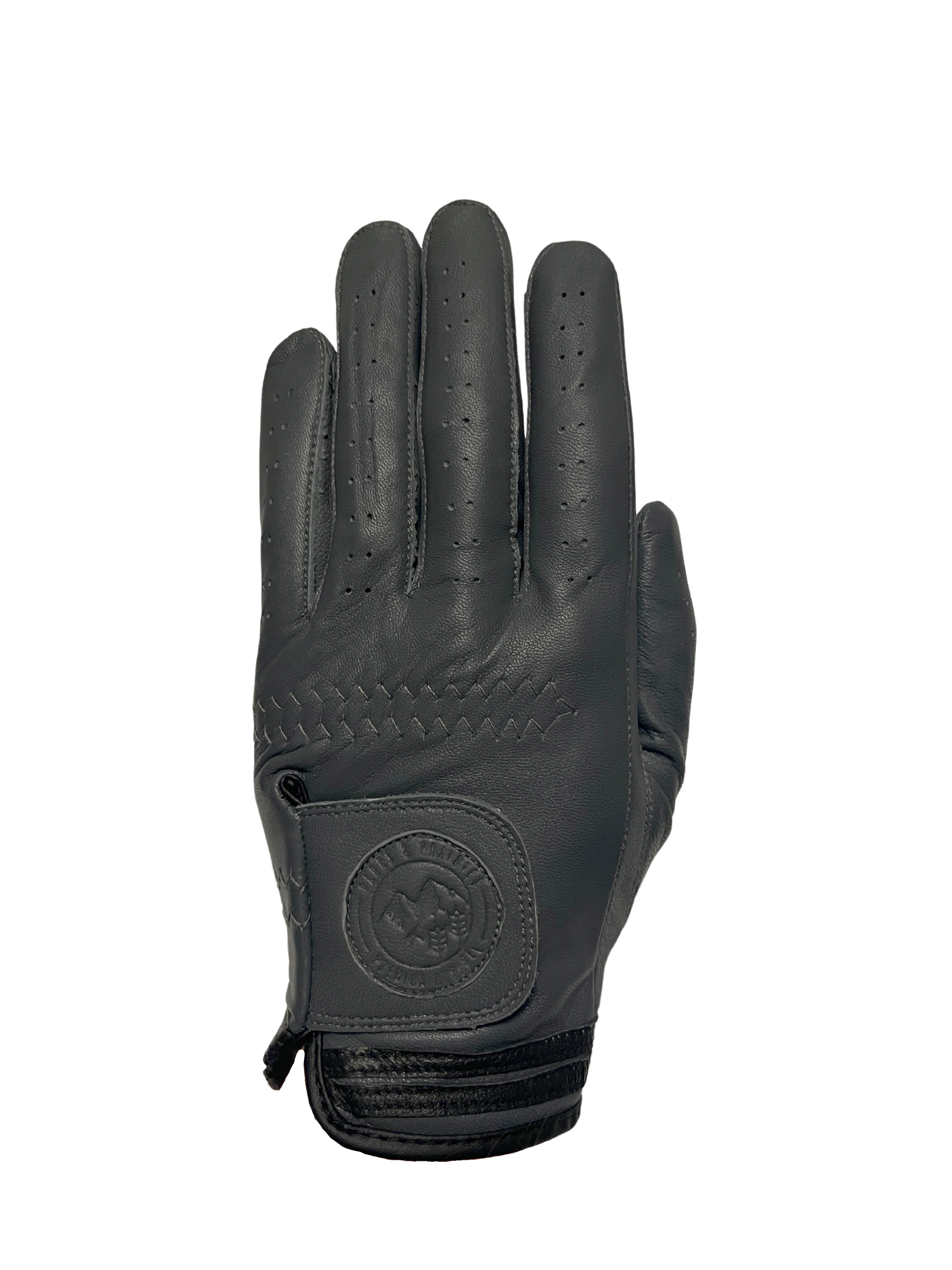 The Men's Golf Glove is made of buttery soft, AAA Cabretta Leather. Featuring a charcoal grey colorway with black accents, our gloves deliver top quality materials with comfort and style.